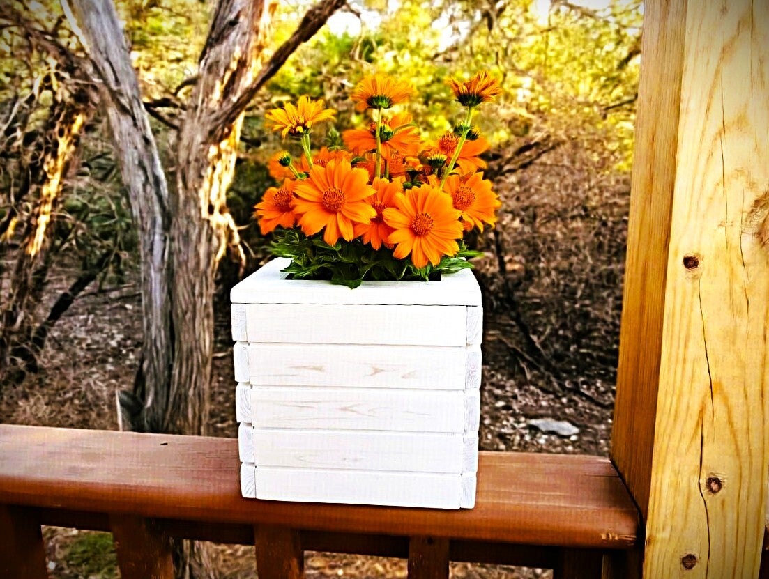 All our creations come with quality craftsmanship with all joins secured with exterior carpentry glue fastened with the highest quality hardware. It also comes lined with landscape material and a high quality exterior finish. Tested over the seasons in The Texas Hill Country, this planter holds up through high winds and stormy weather with no problem. Ask about other available colors and finishes.
